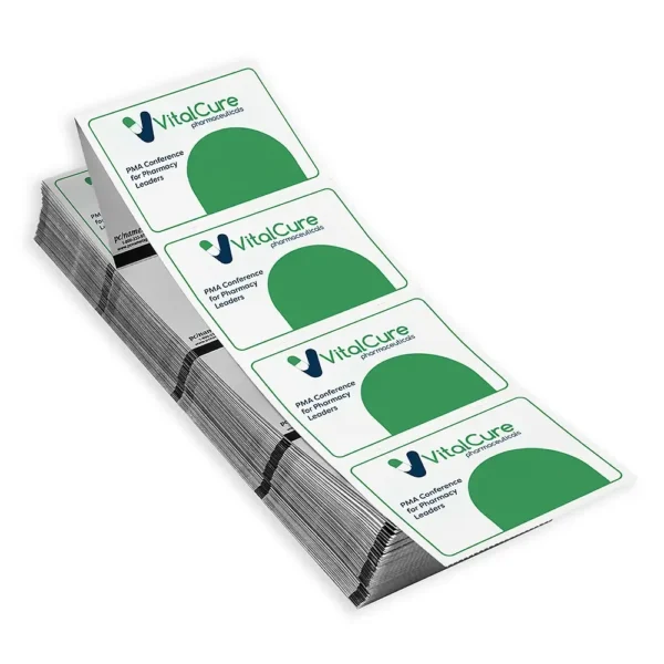 Simplify event registration with 4 x 3 Direct Thermal Fanfold Paper. This cost-effective solution allows for on-demand, high-quality badge printing with single-side, 2-color imprint. Vivid printing ensures clear logos and text on a professional, bright white paper stock. Black timing mark guarantees accurate printer calibration. Perforated edges provide clean separation for a polished presentation.