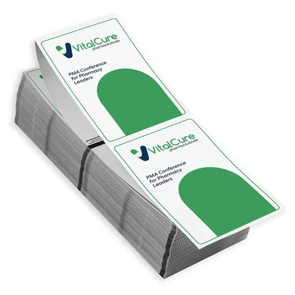 Simplify event registration with 4 x 6 Direct Thermal Fanfold Paper. This cost-effective solution allows for on-demand, high-quality badge printing with single-side, 2-color imprint. Vivid printing ensures clear logos and text on a professional, bright white paper stock. Black timing mark guarantees accurate printer calibration. Perforated edges provide clean separation for a polished presentation.