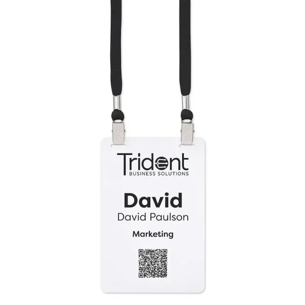 Its durable material and triple slot options easily pair with any lanyard attachment, eliminating the need for holders and saves you money while reducing waste. The black timing mark ensures precise printing, and perforations enhance both appearance and tearability, making detachment clean and effortless. Double-sided printing offers more space for customization—add logos, titles, agendas, maps, and even barcodes. Simply fold after printing.